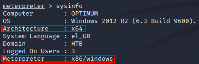 There’s a Difference in Architecture between the box and our meterpreter session#