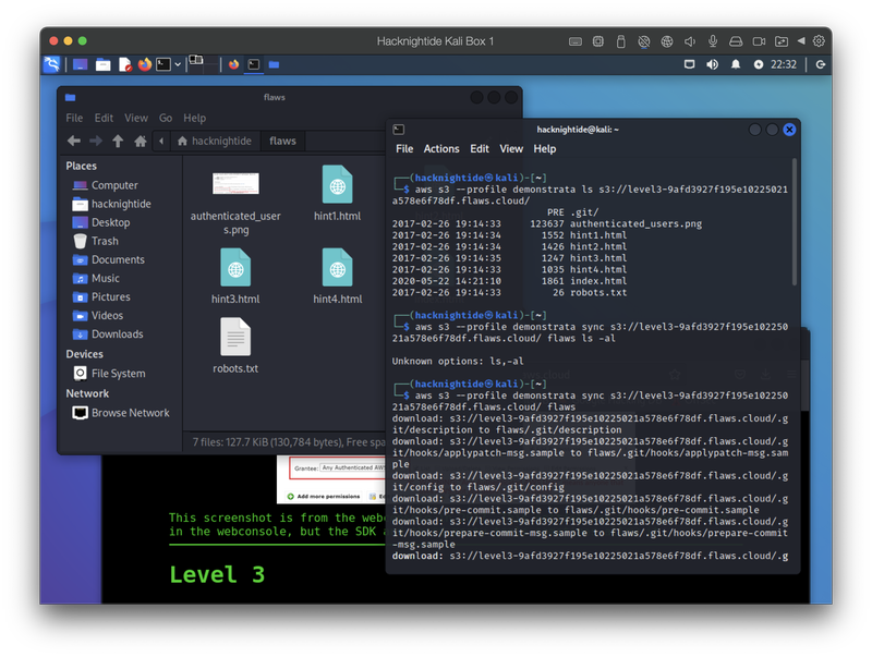 aws s3 --profile demonstrata ls s3://level2-c8b217a33fcf1f839f6f1f73a00a9ae7.flaws.cloud
